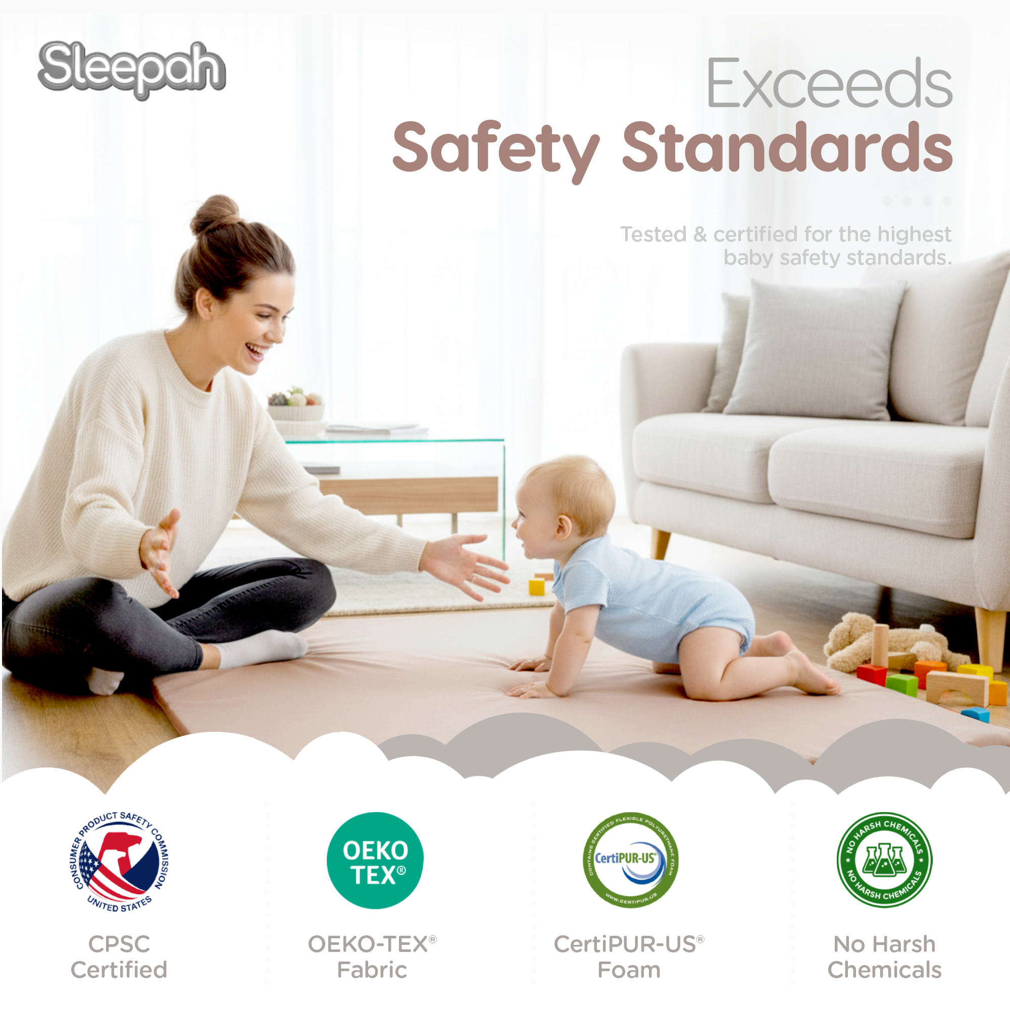 Safety always comes first. That’s why this baby play mat meets or exceeds all U.S. and Canadian CPSC standards, making it a trustworthy choice for your little one. Whether you’re looking for a tummy time mat, a soft floor mat for early crawlers, or a cozy play space for toddlers, Sleepah delivers both function and peace of mind.