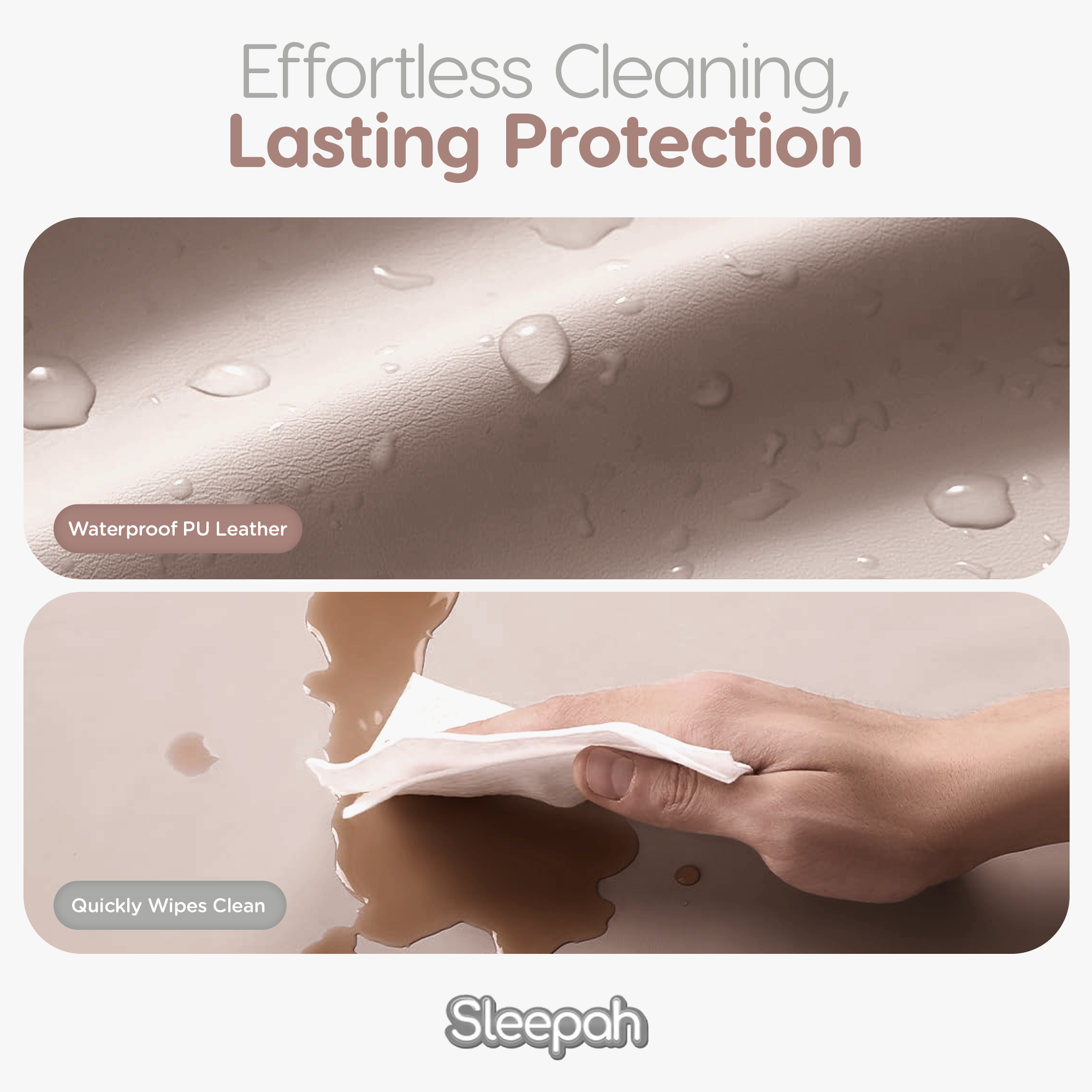 The vegan leather surface is completely waterproof and easy to clean—just wipe it down after spills or messes. For deeper cleaning, the removable cover is machine washable, helping you maintain a clean, comfortable play area without the hassle.