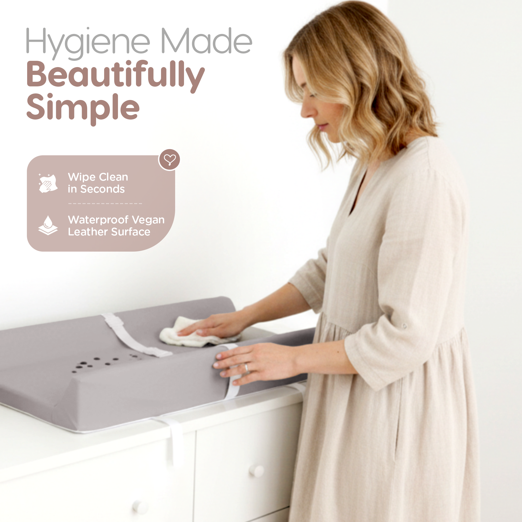 - Waterproof & Washable - In addition to comfort and security, our Baby's Contour Changing Pad is waterpoof, resisting all little accidents with ease. The cleaning process is as effortless. Simply hand clean or wipe it down. It emerges clean, fresh, and ready for your next changing session, offering a long-lasting solution for busy parents.